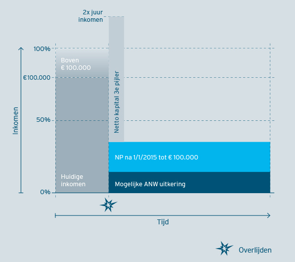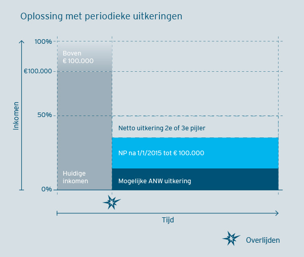 Met ingang van 1 januari 2015 zullen de maximum opbouwpercentages voor pensioenaanspraken verder dalen. Wat vooral ‘revolutionair’ is: Het pensioengevend salaris waarvoor een fi scaal gefacilieerd pensioen kan worden opgebouwd met toepassing van de zogenoemde omkeerregel (pensioenaanspraak onbelast, pensioenuitkeringen belast) wordt gemaximeerd op € 100.000. Voor de opbouw van het ouderdomspensioen voor de categorie medewerkers in de salarisgroepen boven dit nieuwe maximum heeft dit natuurlijk grote gevolgen voor de te bereiken hoogte van het ouderdomspensioen. Dat is (hoewel buitengewoon vervelend) nog niet zo dramatisch nu de werknemer zich daar in ieder geval op kan voorbereiden en op zoek kan gaan naar alternatieven. Het maximum zal niet gaan gelden voor de aanspraken op arbeidsongeschiktheidspensioen. De gevolgen zijn het grootst voor het partneren wezenpensioen. Het overlijdensmoment kun je per defi nitie niet plannen of daar goed voorbereid naar toe sparen. Aanpassing van de pensioenregelingen aan het nieuwe maximum pensioengevend salaris zal dus grote gevolgen kunnen hebben na overlijden als de pensioenuitvoerders, min of meer gedwongen, de nabestaandenpensioenaanspraken moeten verlagen als gevolg van de aanpassing van het fi scale kader.De staatssecretaris van Financiën gaat in een brief van 23 mei 2014 op verzoek van de Eerste Kamer in op de vraag wat volgens hem de gevolgen zijn voor het partnerpensioen voor de aftopping van het pensioengevend loon op € 100.000.