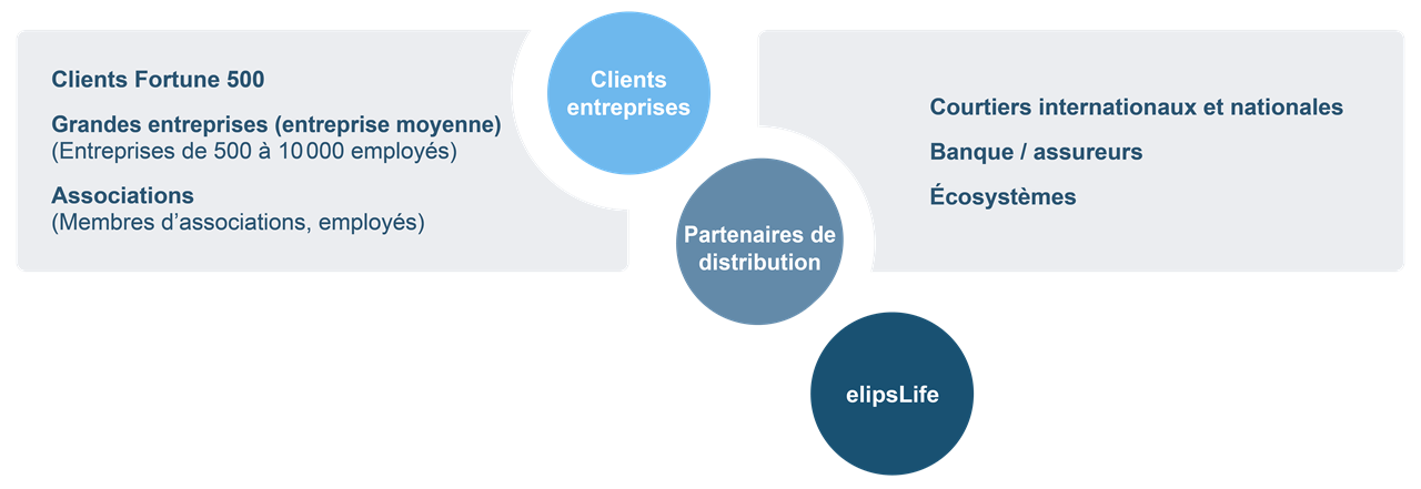 elipsLife se concentre sur la clientèle d’entreprises (B2B) et leur propose sur leurs marchés toutes les assurances qui couvrent les conséquences financières des maladies et des accidents. Nos clients sont des entreprises et des associations de 500 à 10 000 collaborateurs.
