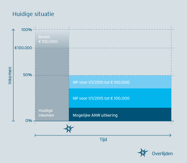 Voor de basisregelingen tot €100.000 biedt elipsLife zowel voor bestaande als voor nieuwe klanten de ‘risicopartnerpensioenknip’. Voor alle medewerkers verzekeren we het hoge pensioenpercentage over het totale pensioengevende loon tot 1/1/2015. Dit wordt aangevuld met het verlaagde percentage over het gemaximeerde inkomen daarna.