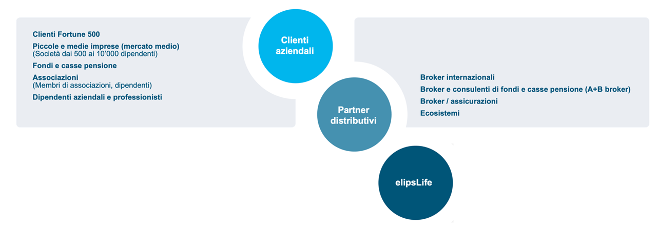 In quanto società di assicurazione specializzata nel segmento B2B, elipsLife si avvale della cooperazione di partner di prim’ordine quali broker, esperti, società di assicurazione, banche e associazioni. La strategia di distribuzione B2B è efficiente in termini di costo e consente un alto livello di professionalità: tutti gli attori coinvolti sono professionisti.